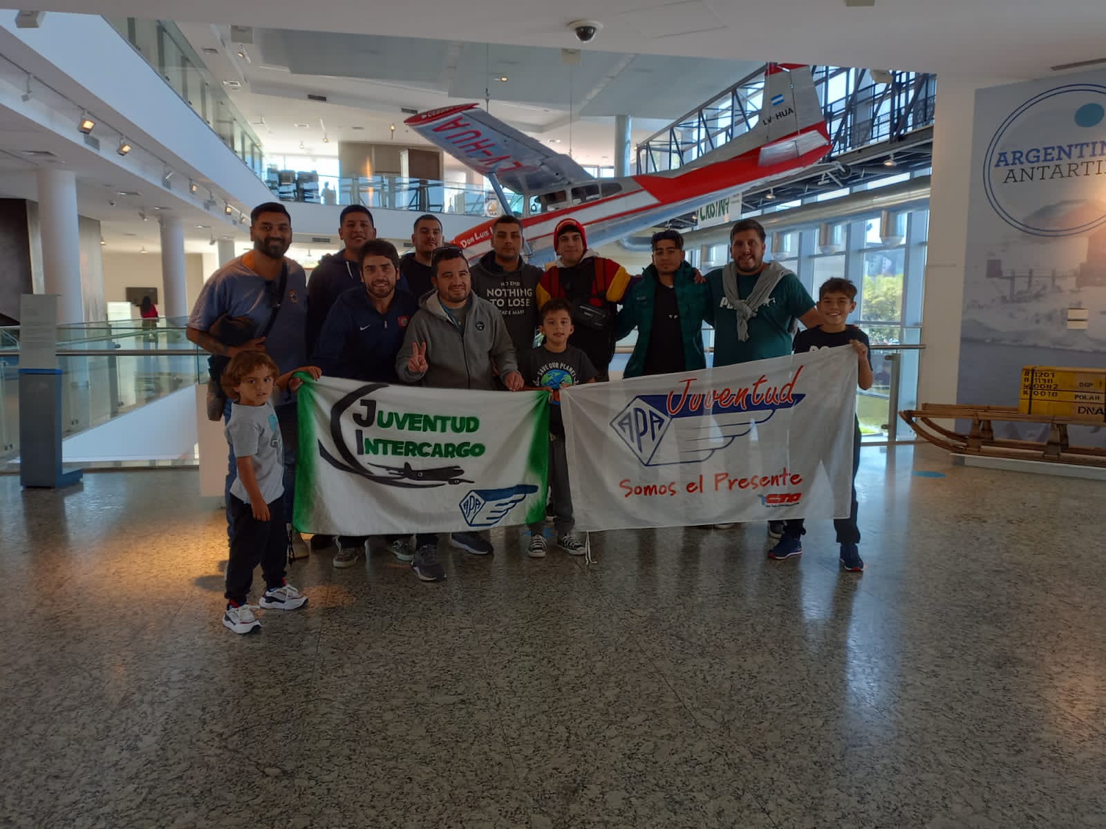 Juan Rattenbach, Secretario Ejecutivo del museo, dio una recorrida guiada a compañerxs de las diferentes bases y empresas, acompañadxs se sus familias. Al final del recorrido le obsequiamos el libro "Por qué fracasó la revolución de los aviones".