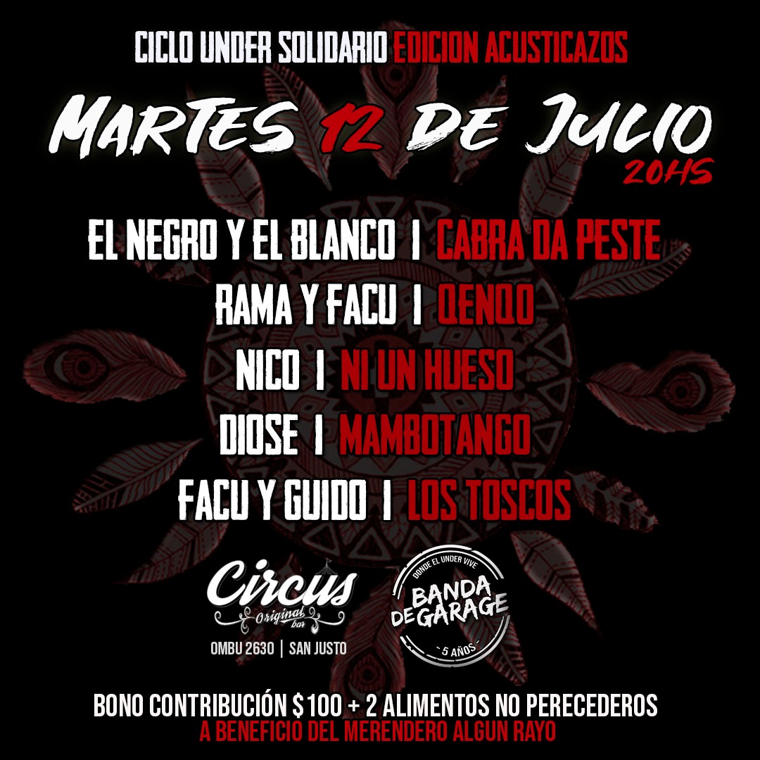 Ciclo Under Solidario. Edición Acusticazos en Circus Original Bar, Ombú 2630 San Justo.