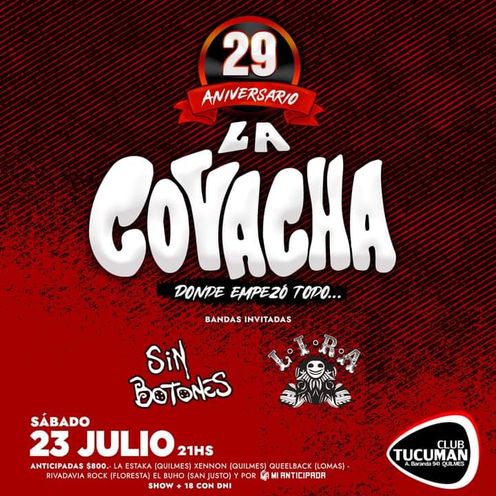 Toca La Covacha junto a Sin Botones y LIRA en el Club Tucumán, Andrés Baranda 941 Quilmes.
